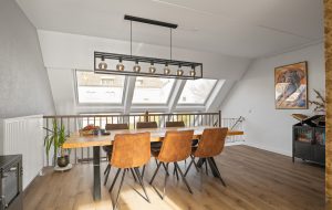 De woonverdieping is een echte eyecatcher. De royale woonkamer met vide met grote raampartijen straalt luxe uit. Aan de voorzijde vind je de moderne L-vormige keuken met losse kastenwand (2020), voorzien van hoogwaardige inbouwapparatuur en veel bergruimte – een ideale plek voor kookliefhebbers.