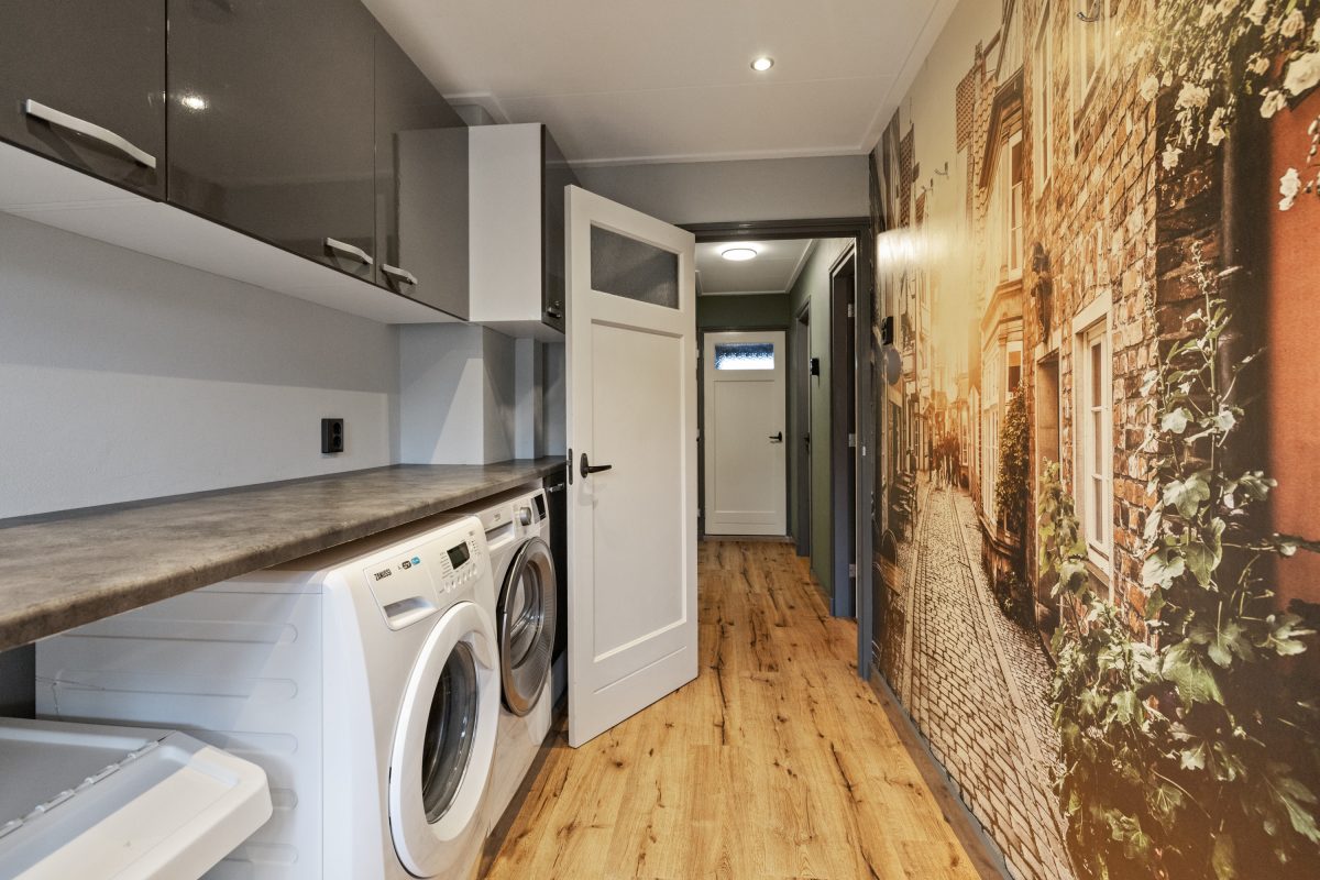 Halfopen keuken in aanbouw, voorzien van vloerverwarming en moderne opstelling. Vanuit de keuken toegang tot de tuin met achterin een veranda – ideaal voor gezellig borrelen of buiten eten.