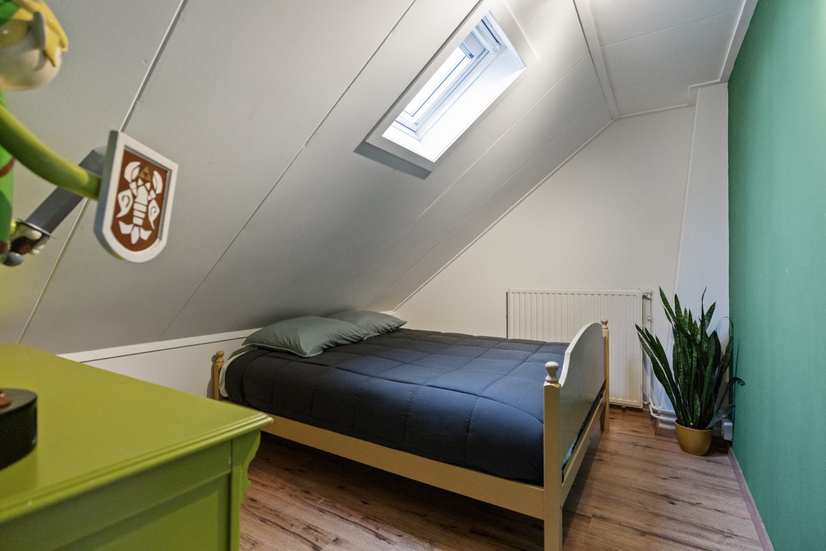 Recent opgeknapt en voorzien van extra dakisolatie; hier vind je slaapkamer 4 en 5. Voorzijde met nieuw kiepraam; nieuw raam voor de achterzijde staat klaar.