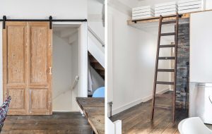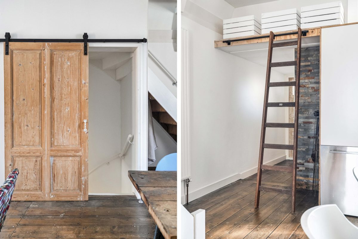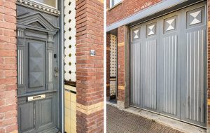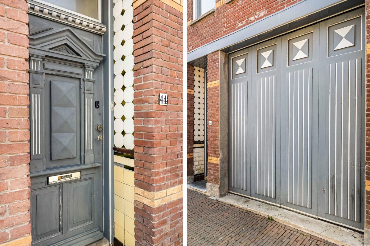 Aan de straatzijde bevinden zich karakteristieke harmonicadeuren die zowel uitstraling als functionaliteit bieden.