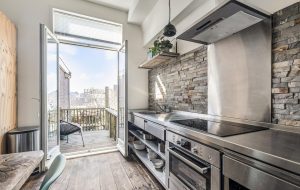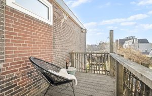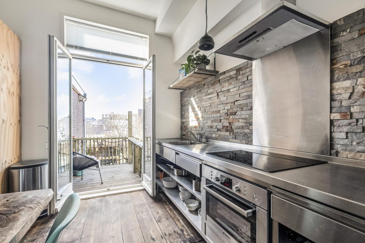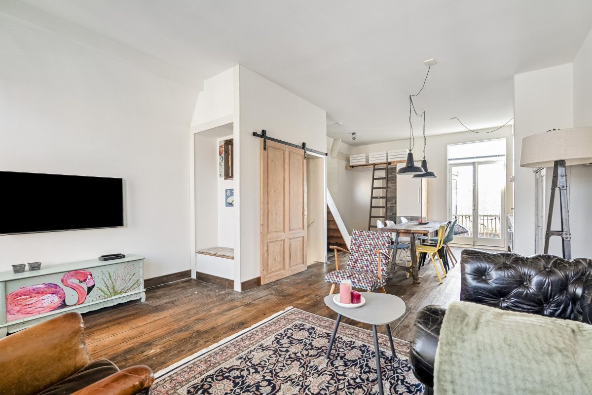 De woonkamer valt op door de mooie houten vloer, grote raampartijen, hoge plafonds en een fijne lichtinval. De open keuken is in 2015 vernieuwd en uitgevoerd in een stoere RVS-opstelling. Hier is ook direct toegang tot een aansluitend balkon, een heerlijke plek om na werktijd van de zon te genieten.