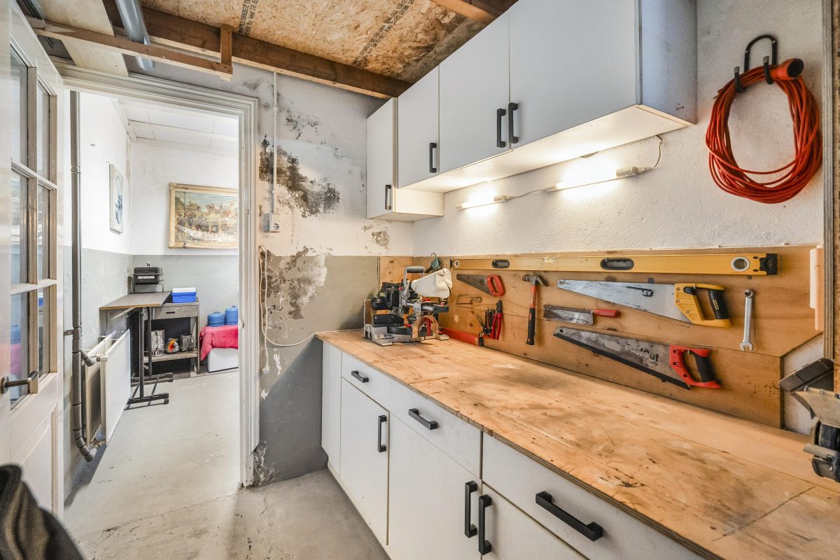 Op de begane grond een grote garage & functionele bijkeuken.