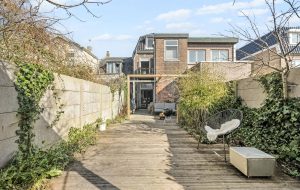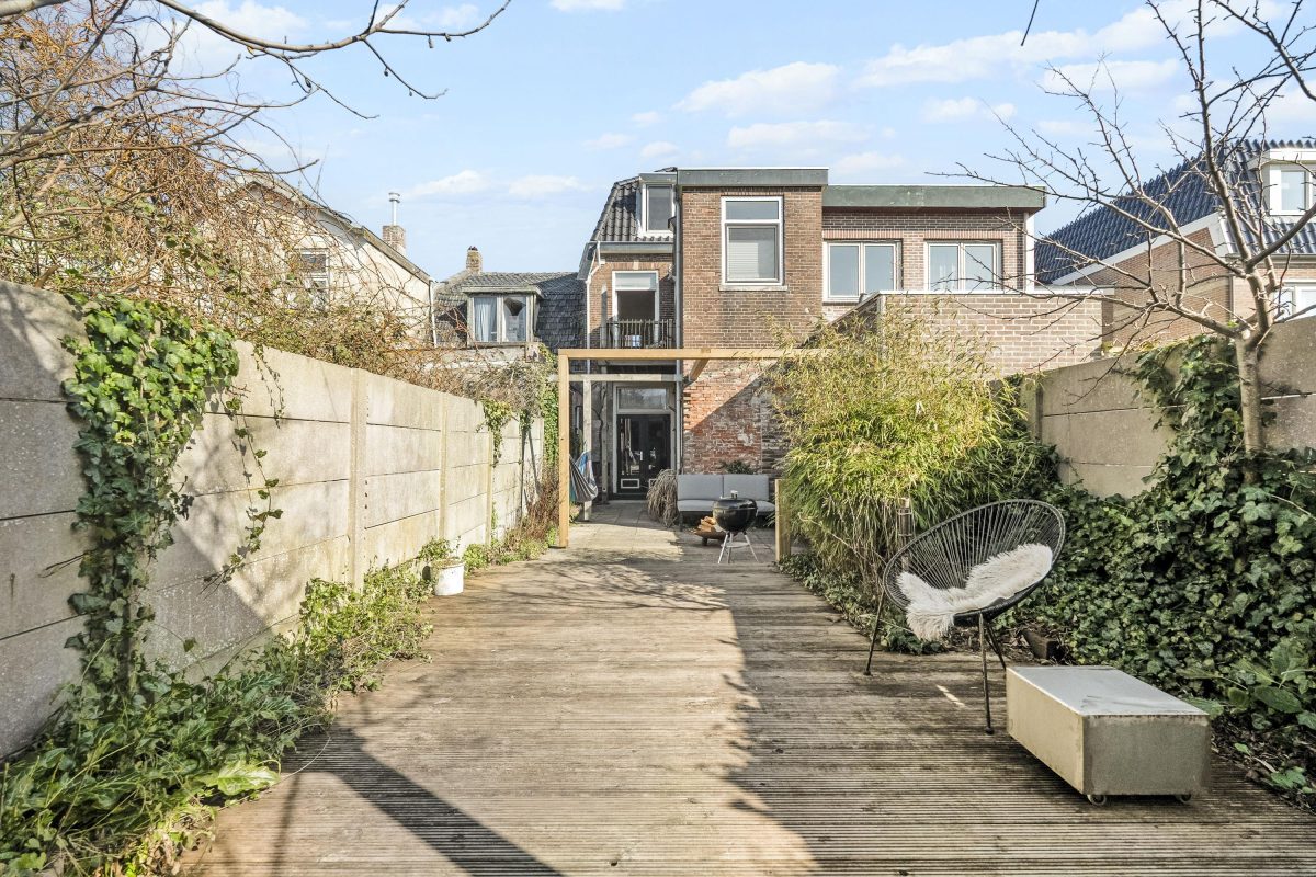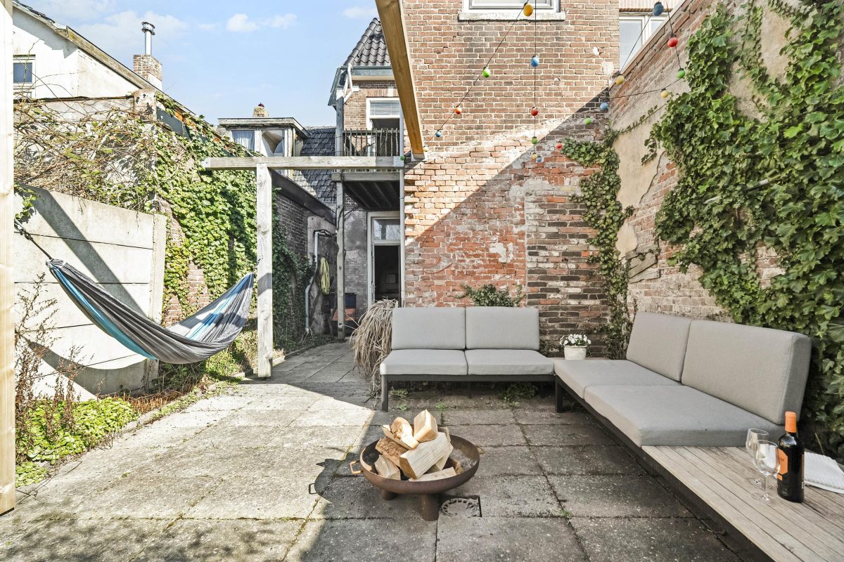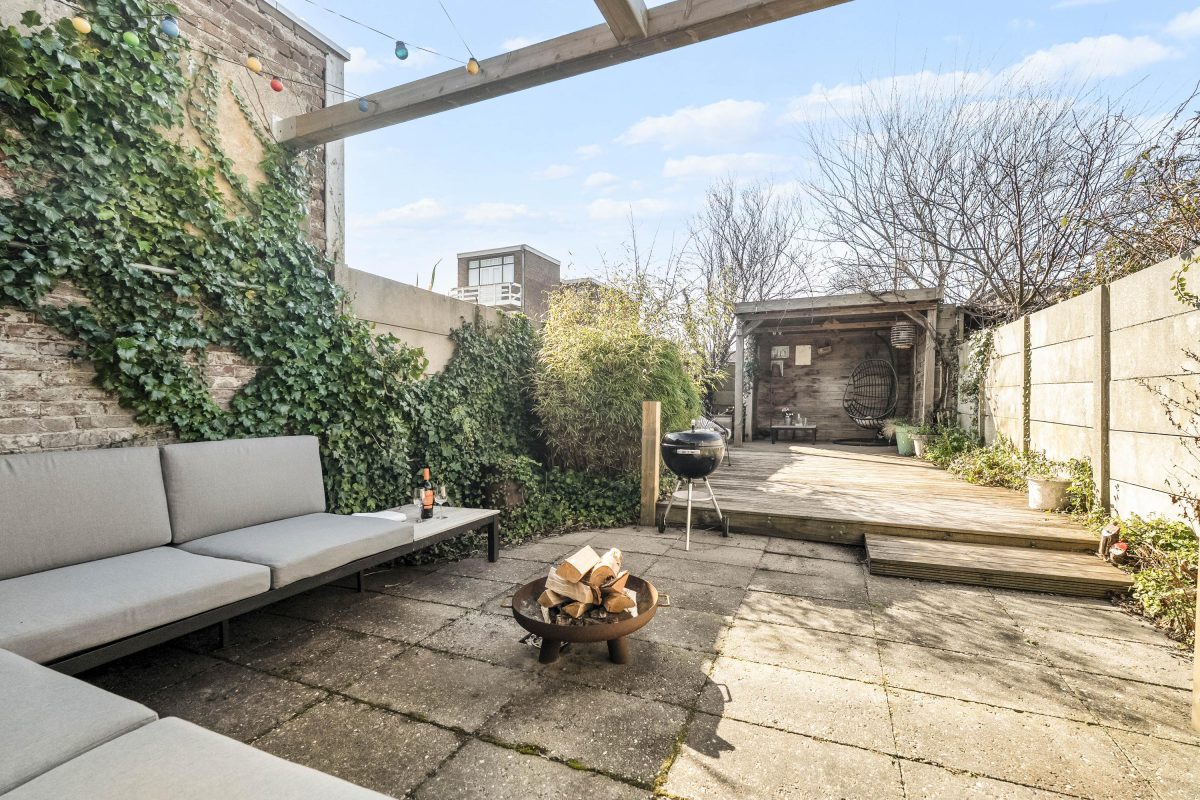 De achtertuin is diep, zonnig en sfeervol ingericht. De ligging op het zuidwesten zorgt voor veel zonuren. De tuin beschikt over een buitendouche en een veranda die zorgt voor een knusse, beschutte zitplek.