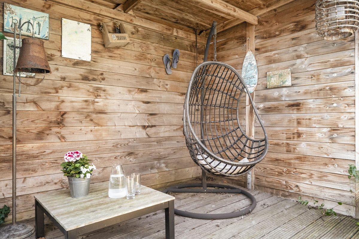 Buitenruimte – zonnige tuin met buitendouche & veranda.