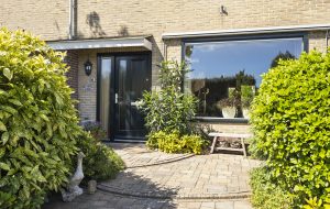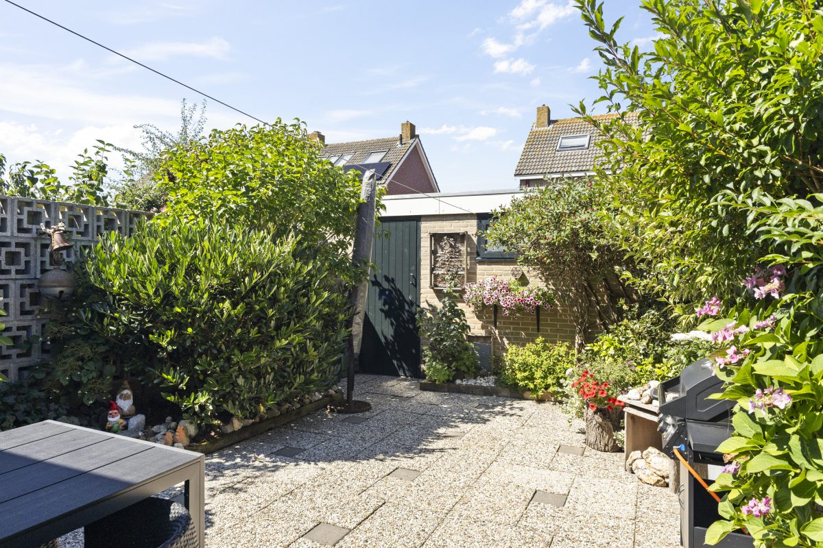 Vanuit de keuken heb je direct toegang tot de achtertuin, die fraai is aangelegd en op het westen ligt. Hier geniet je van de middag- en avondzon, met daarnaast nog een aparte berging en groene borders. Ook de voortuin is netjes aangelegd en draagt bij aan de verzorgde uitstraling van het geheel.