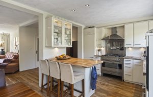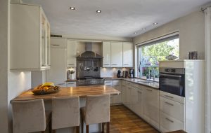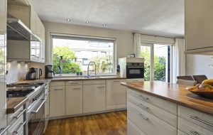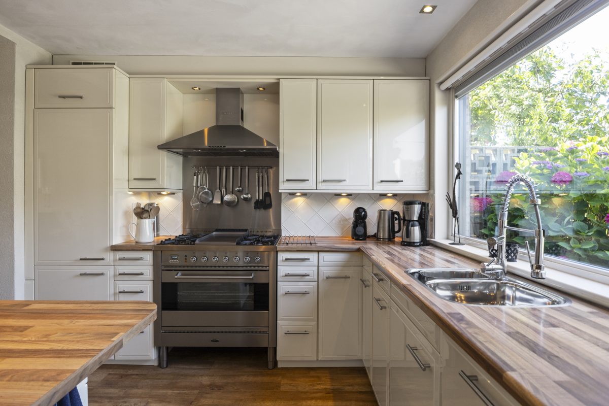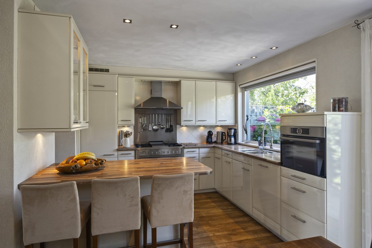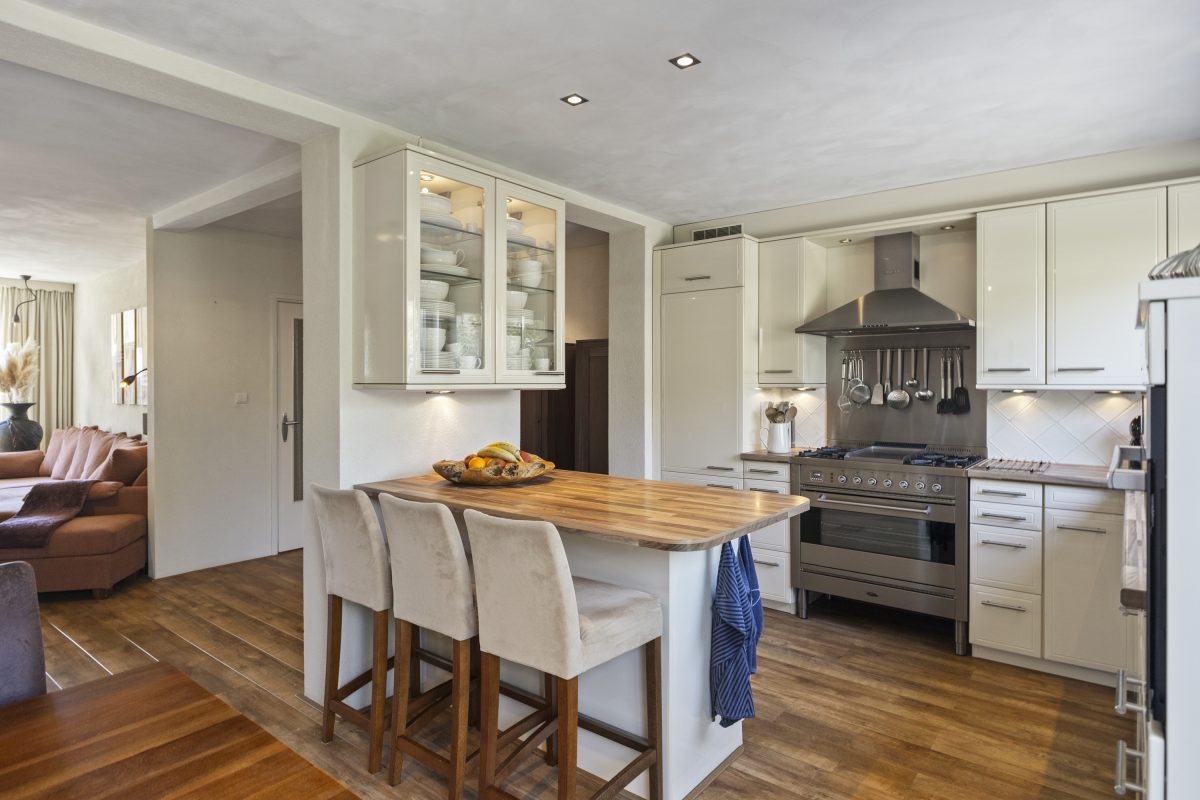 De open keuken sluit hier naadloos op aan en is ingericht met een royaal hoekopgesteld keukenblok. Voorzien van hoogwaardige inbouwapparatuur van Bosch en Siemens én een indrukwekkend Boretti fornuis, is deze keuken een droom voor iedere kookliefhebber.