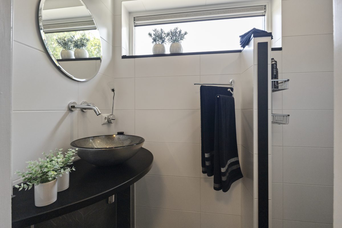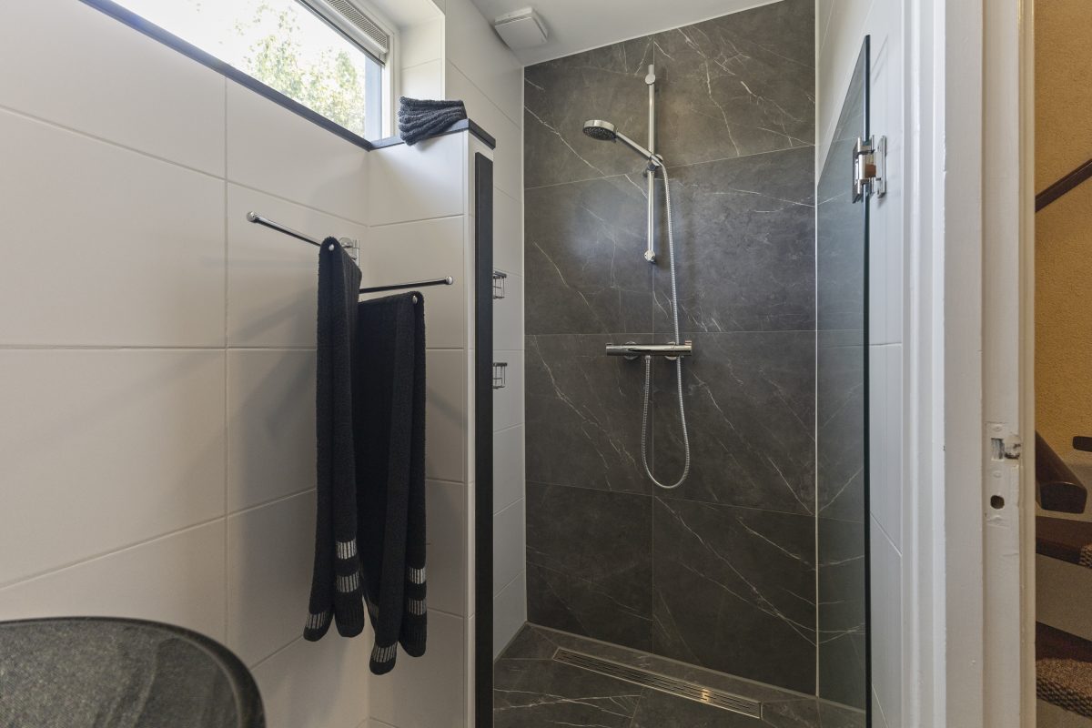 Op de eerste verdieping bevinden zich drie goed bemeten slaapkamers en een apart toilet. De moderne badkamer, vernieuwd in 2021, is uitgerust met een ruime inloopdouche, een stijlvol wastafelmeubel en een elektrische kachel voor extra comfort.