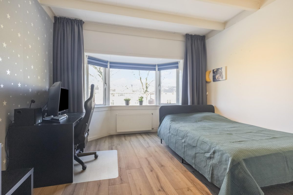 Van buiten herkenbaar aan de ruime voortuin en de erker over 2 verdiepingen.