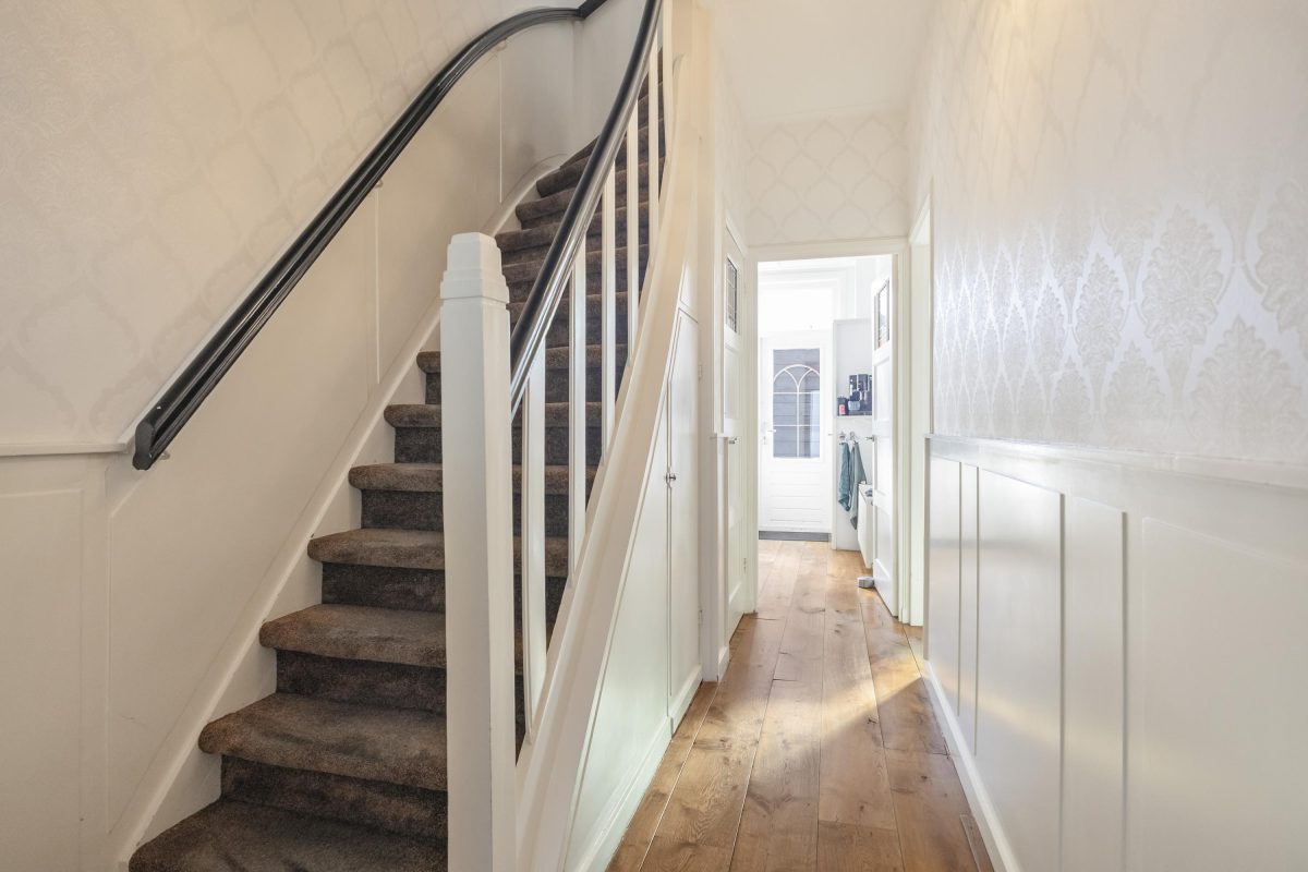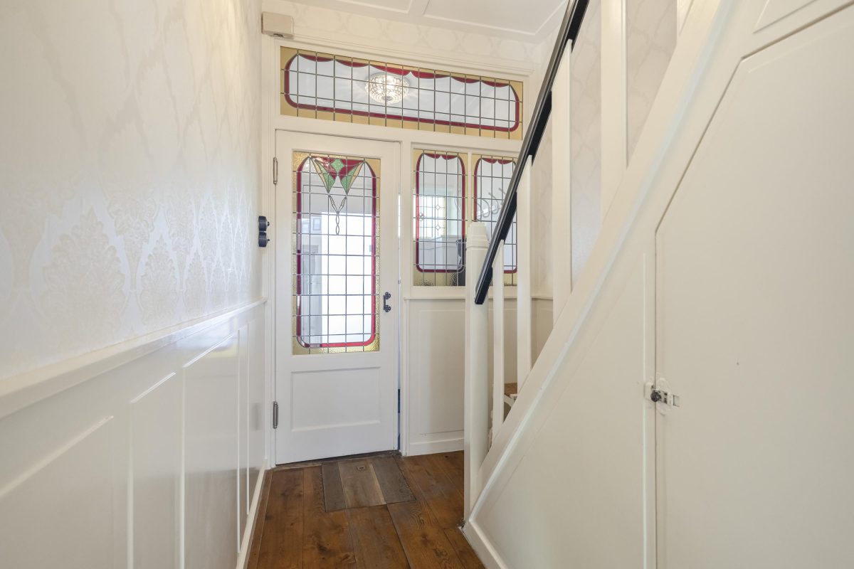 En van binnen… oorspronkelijke paneeldeuren, en-suite deuren, hoge planfonds, entree met glas in lood… Deze woning ademt de jaren 30 sfeer!