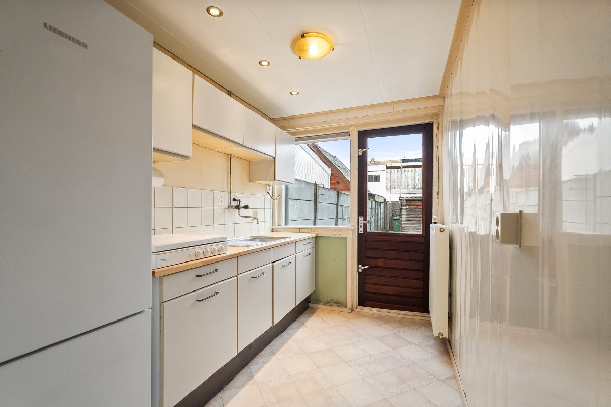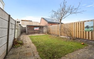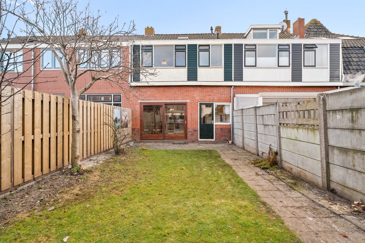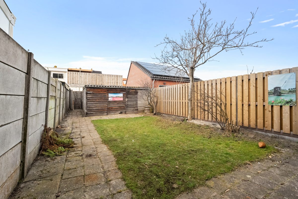 Achter de woning ligt een tuin op het noorden die, door de diepte en ligging, de hele dag zonnig kan zijn. Achterin vind je de schuur met toegangsdeur. In de aangrenzende straat aan de achterzijde is extra parkeergelegenheid mogelijk.