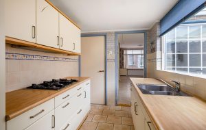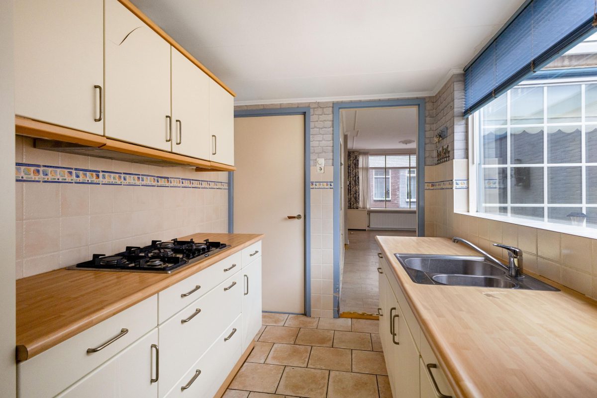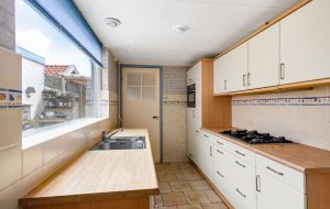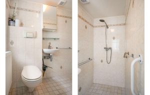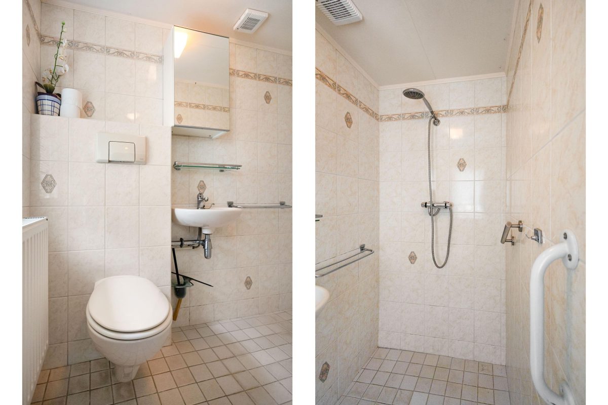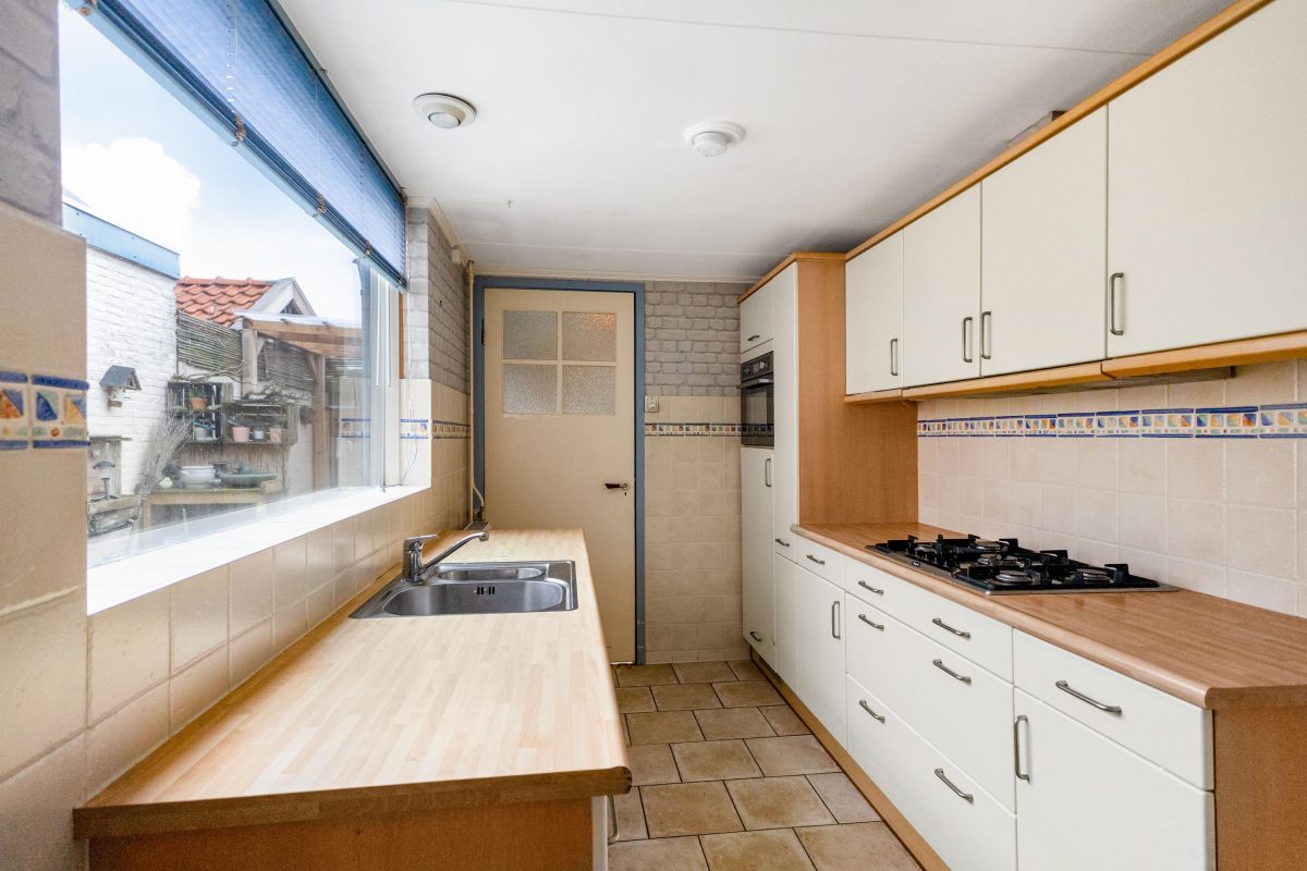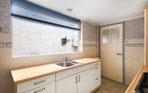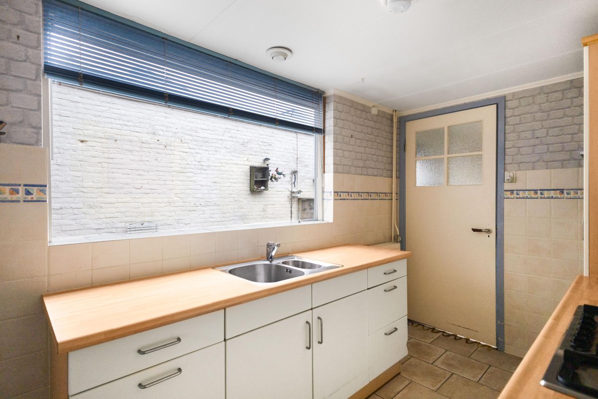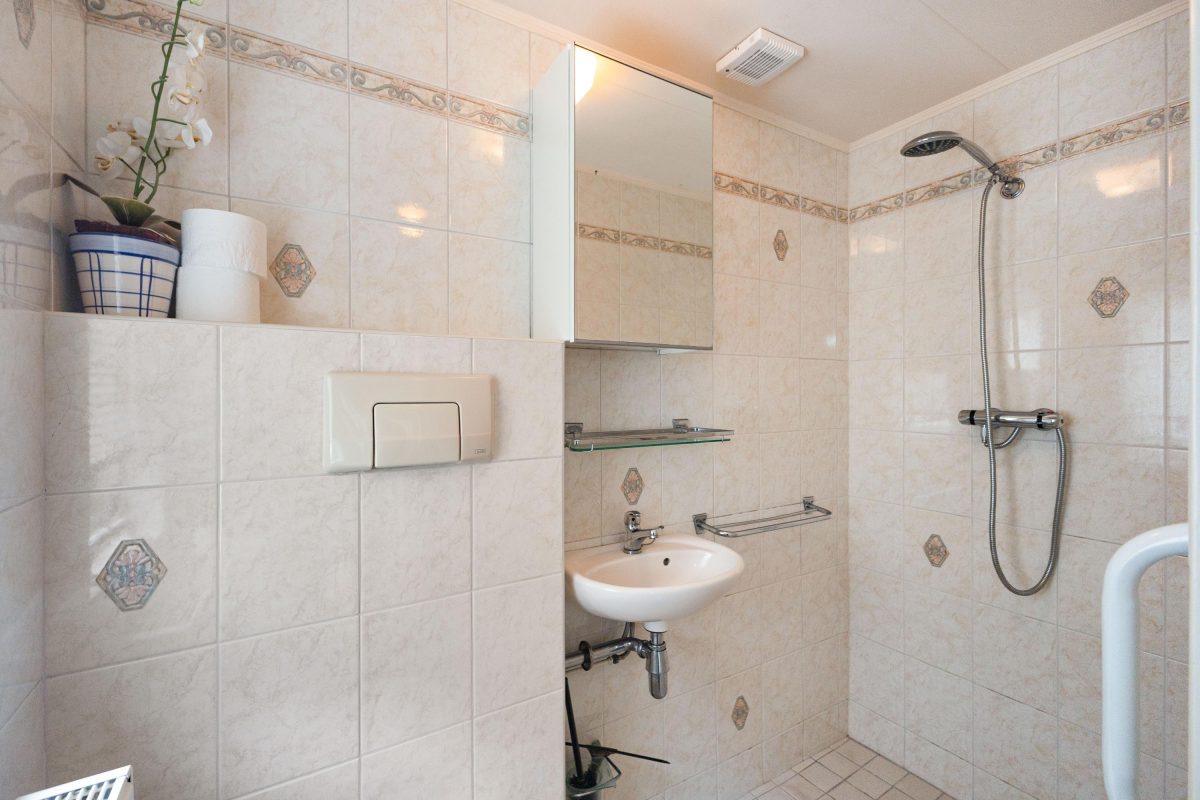 De keuken en badkamer zijn, ondanks hun leeftijd, netjes en nog volledig functioneel.