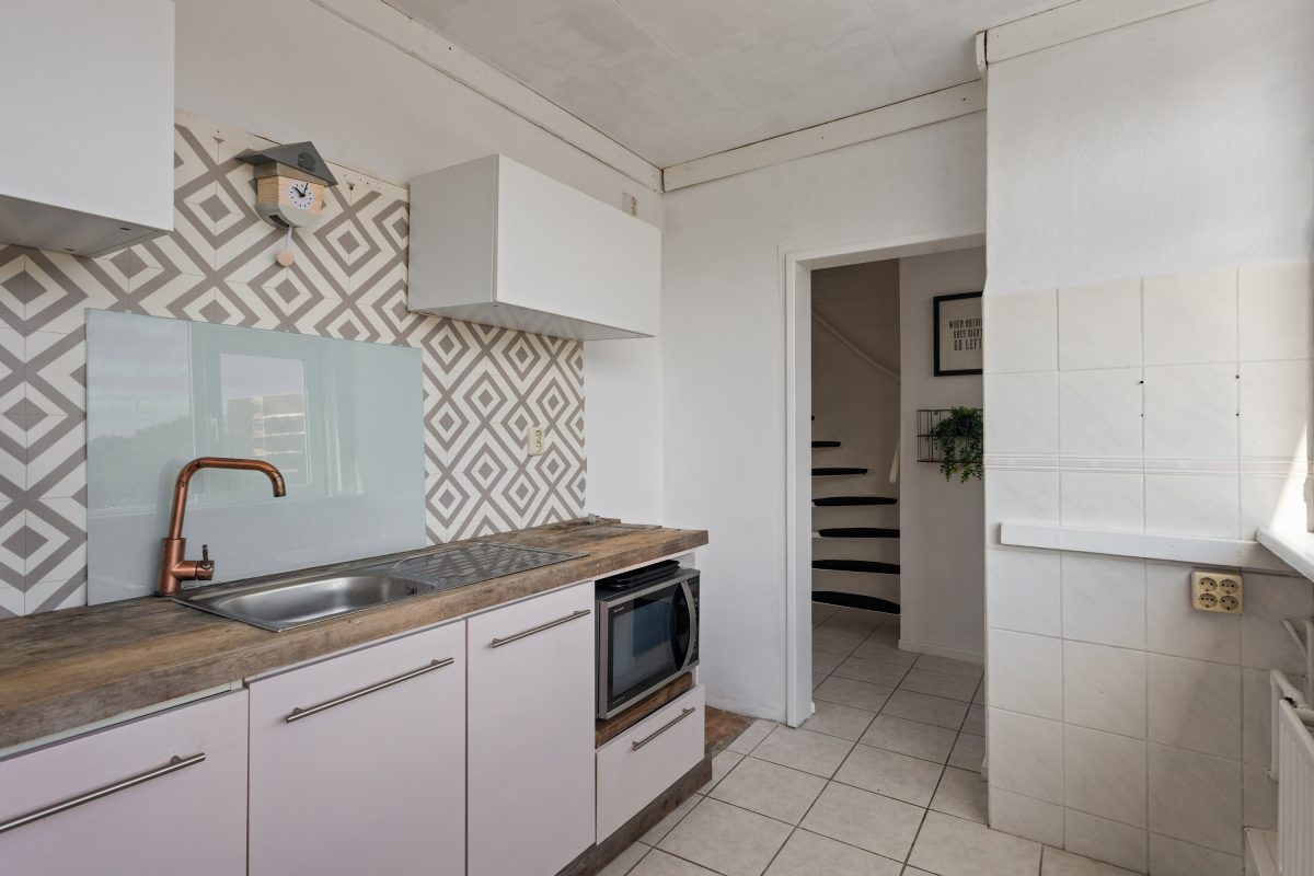 Dit ruime maisonnette-appartement van ca. 86 m² biedt niet alleen een ideale ligging, maar ook een riant dakterras van 28 m² op het westen.