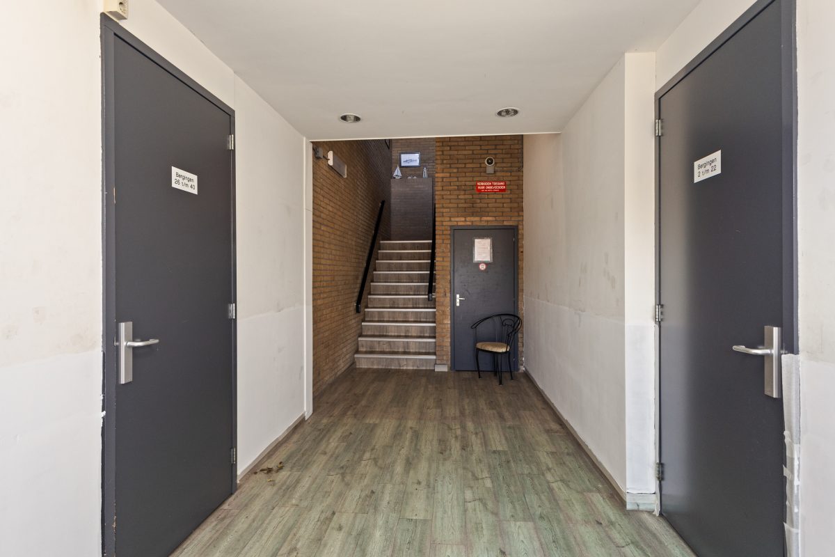 Centrale entree met intercominstallatie en brievenbussen, ruime eigen berging voorzien van elektra, trappenhuis naar de 1e verdieping en galerij.