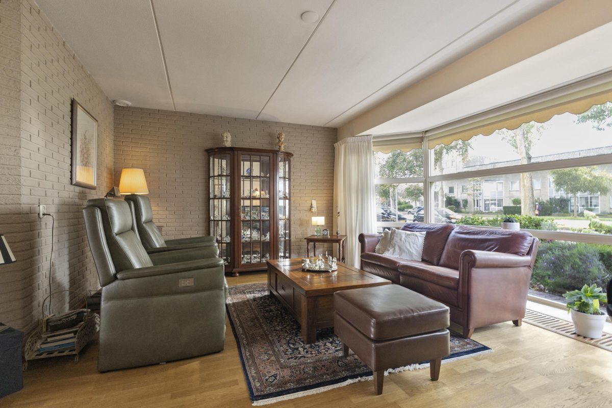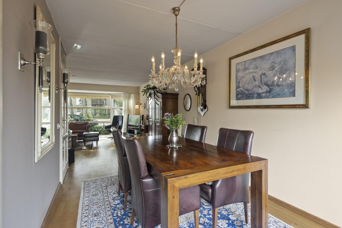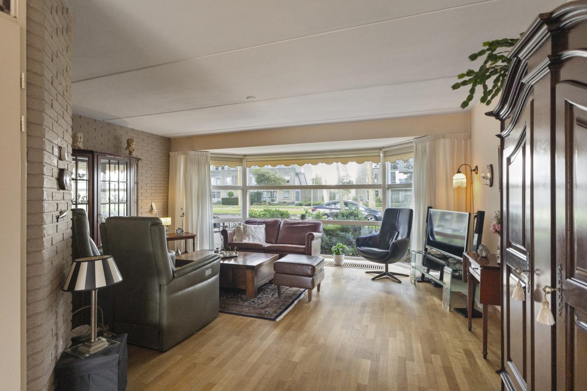 Via de zij-entree stap je binnen in de woning. De lichte woonkamer aan de voorzijde is voorzien van een sfeervolle houten vloer en grote erker, waardoor er een grote hoeveelheid daglicht binnenvalt. Aan de achterzijde bevindt zich het eetgedeelte met schuifpui naar de tuin en de open keuken. De aangrenzende bijkeuken zorgt voor extra bergruimte en een tweede toegang tot de tuin. Vanuit de bijkeuken is er tevens toegang tot de naastgelegen garage.