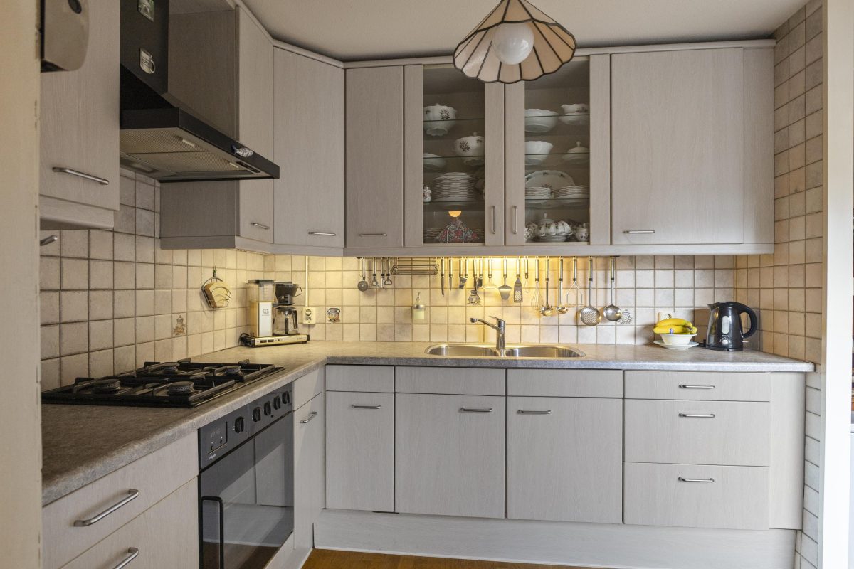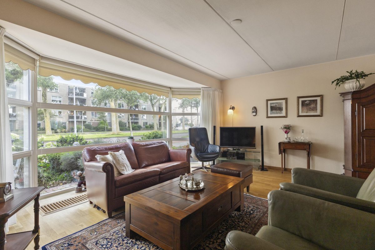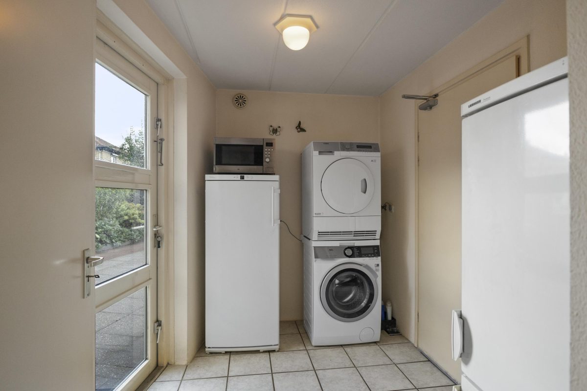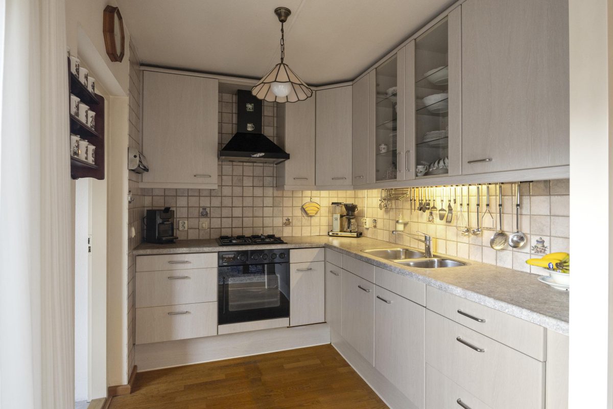 Via de zij-entree stap je binnen in de woning. De lichte woonkamer aan de voorzijde is voorzien van een sfeervolle houten vloer en grote erker, waardoor er een grote hoeveelheid daglicht binnenvalt. Aan de achterzijde bevindt zich het eetgedeelte met schuifpui naar de tuin en de open keuken. De aangrenzende bijkeuken zorgt voor extra bergruimte en een tweede toegang tot de tuin. Vanuit de bijkeuken is er tevens toegang tot de naastgelegen garage.