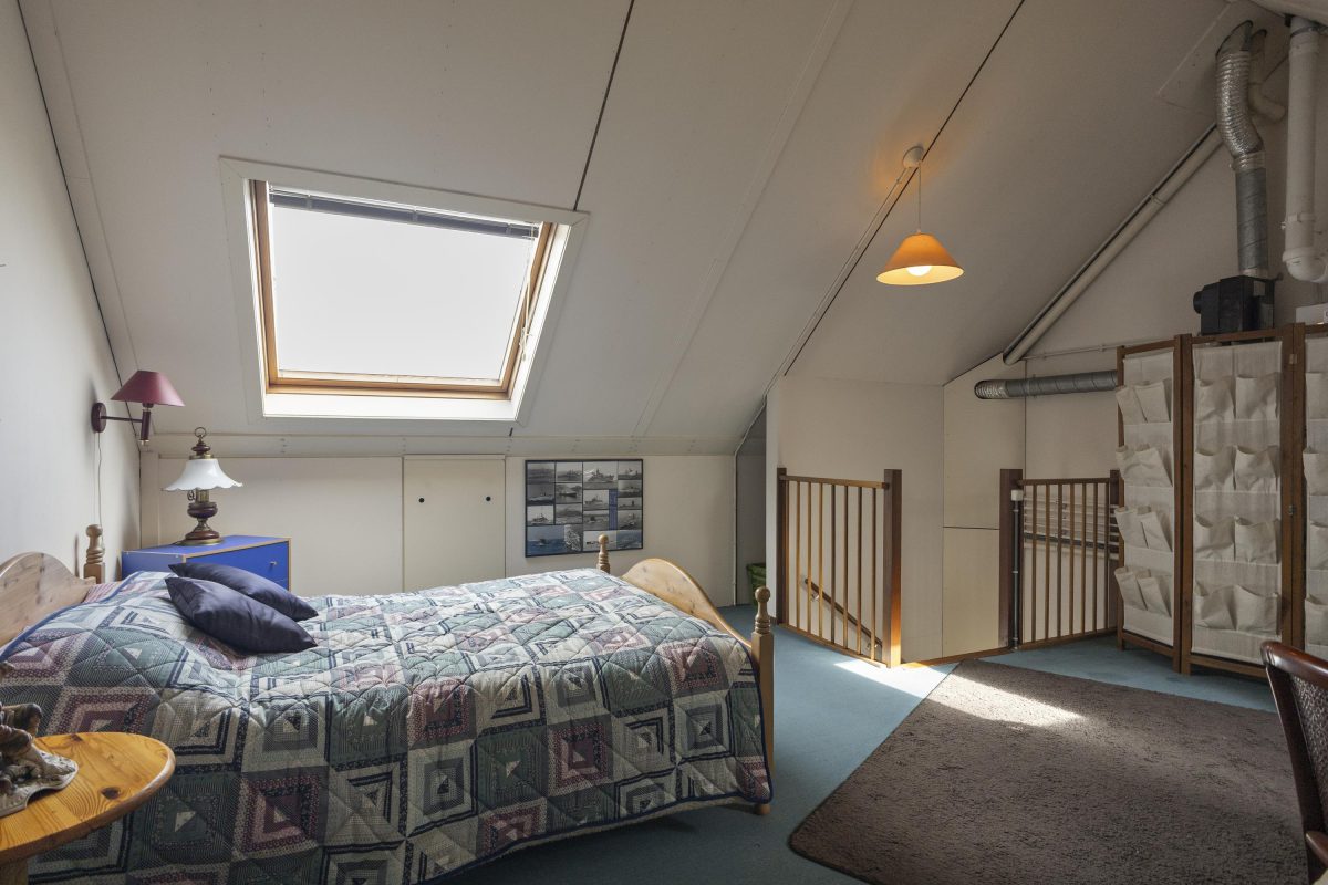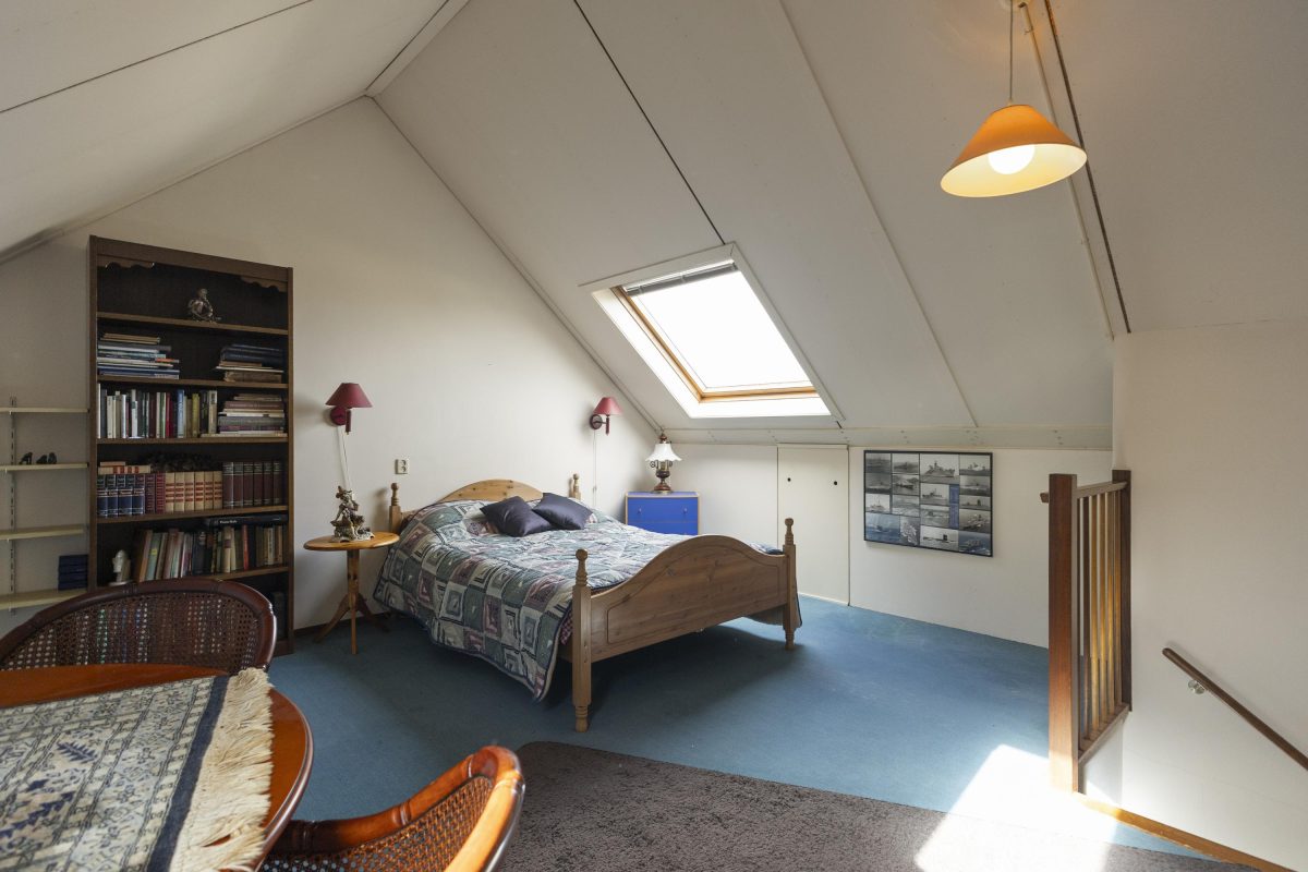 De zolder is via een vaste trap bereikbaar en biedt mogelijkheid voor een extra slaapkamer of met een dakkapel zelfs 2 extra kamers. Hier bevinden zich ook de technische installaties, waaronder de cv-ketel en de omvormer voor de 9 zonnepanelen.