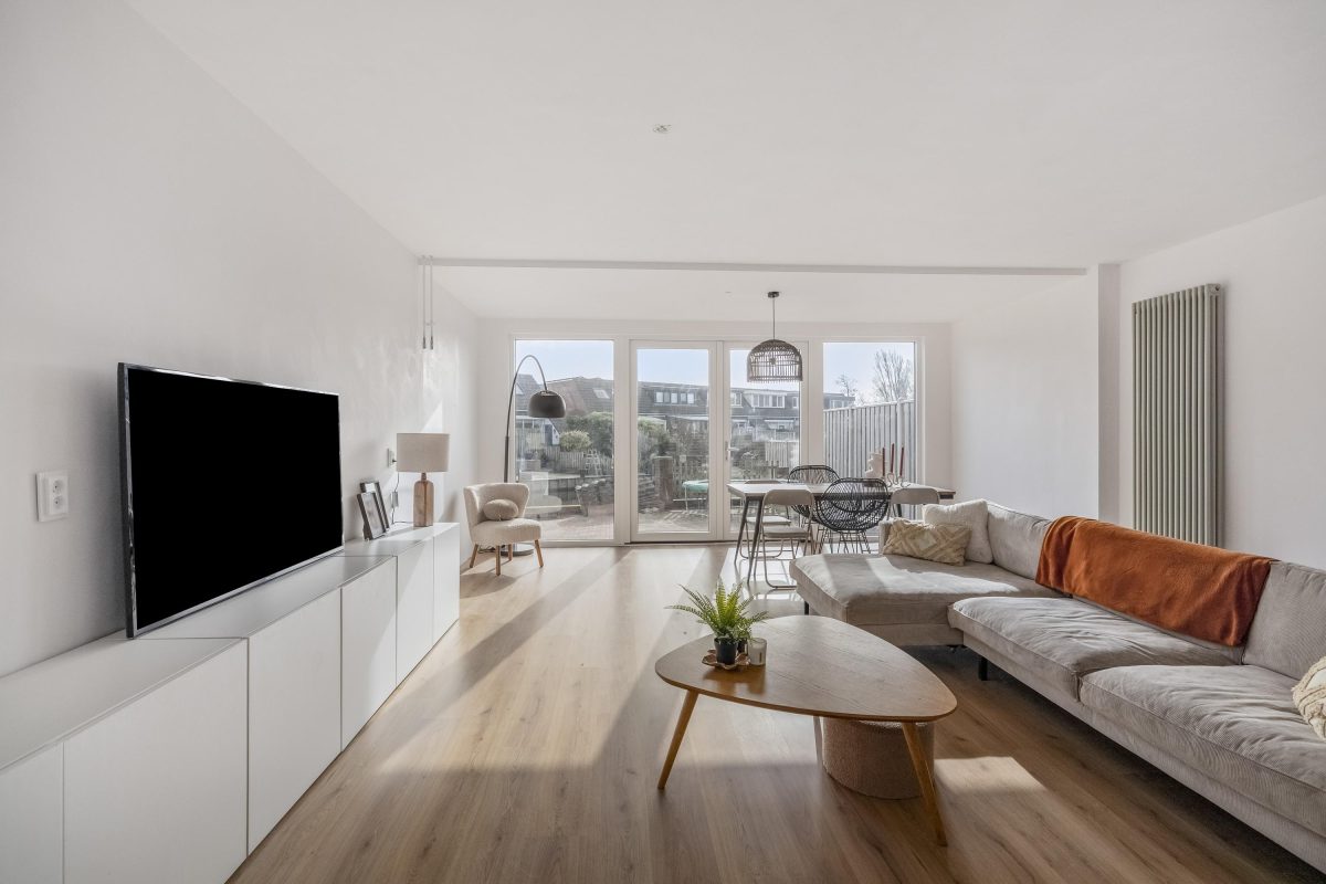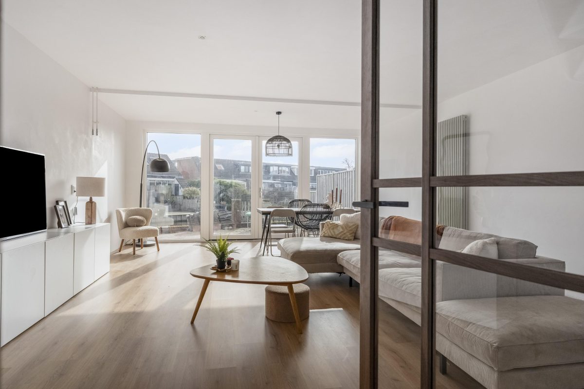 Via de nieuwe kunststof voordeur (2024) betreed je de woning. De woonkamer is licht en prettig van opzet met zicht op het water en de omliggende tuin. De aanbouw aan de achterzijde (eind 2024) zorgt voor extra leefruimte en maakt de begane grond ruim en functioneel, met een fijne verbinding tussen binnen en buiten.