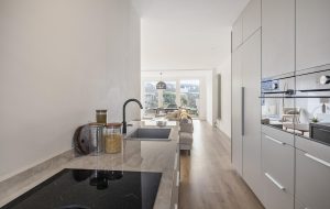 De open keuken is in augustus/september 2024 vernieuwd en vormt een modern en praktisch geheel. Vanuit de woon- en eetruimte kijk je vrij uit over het water – een plek waar het dagelijks wonen direct ontspannen aanvoelt.