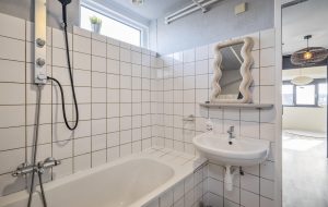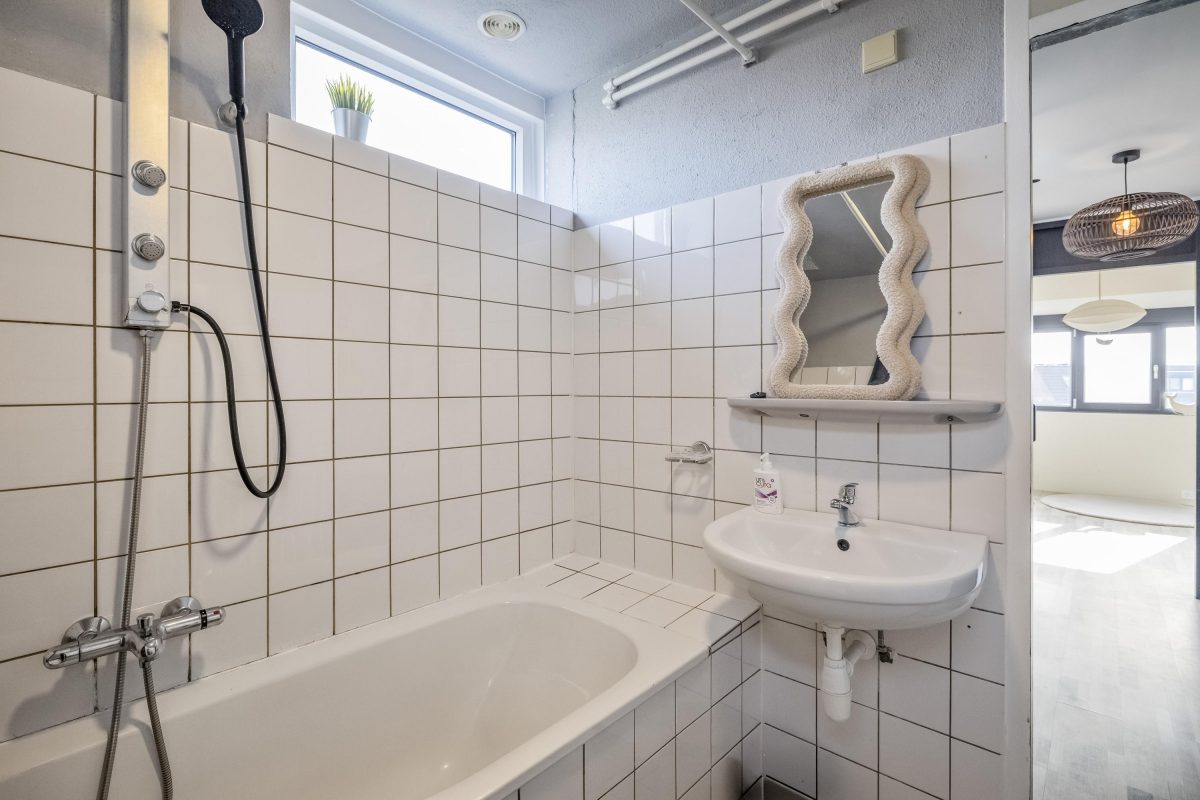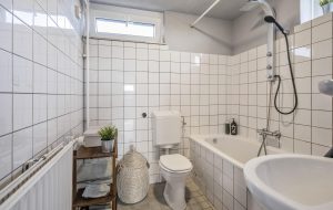 De badkamer is functioneel uitgevoerd, maar nog niet gerenoveerd of gemoderniseerd – een mooie kans voor de nieuwe eigenaar om deze geheel naar eigen smaak in te richten.