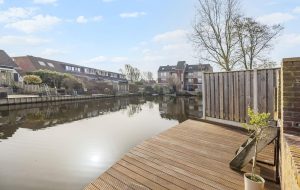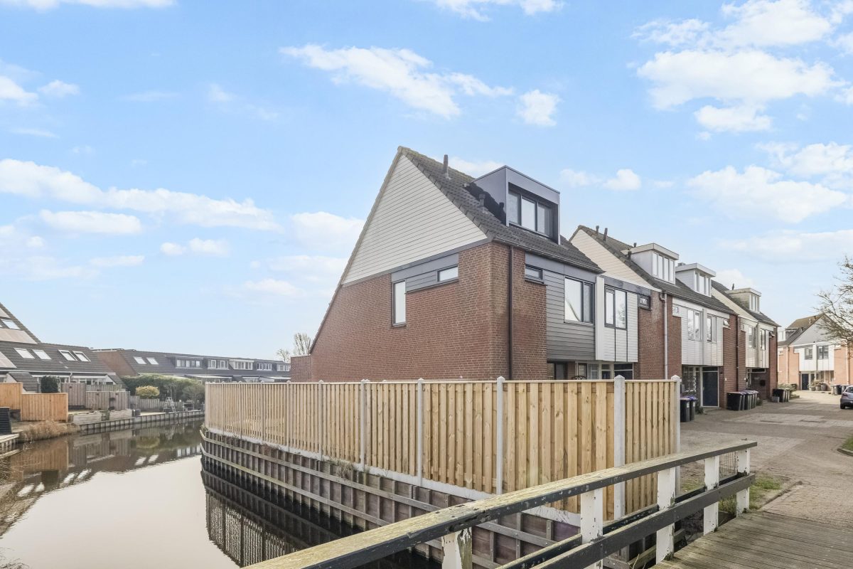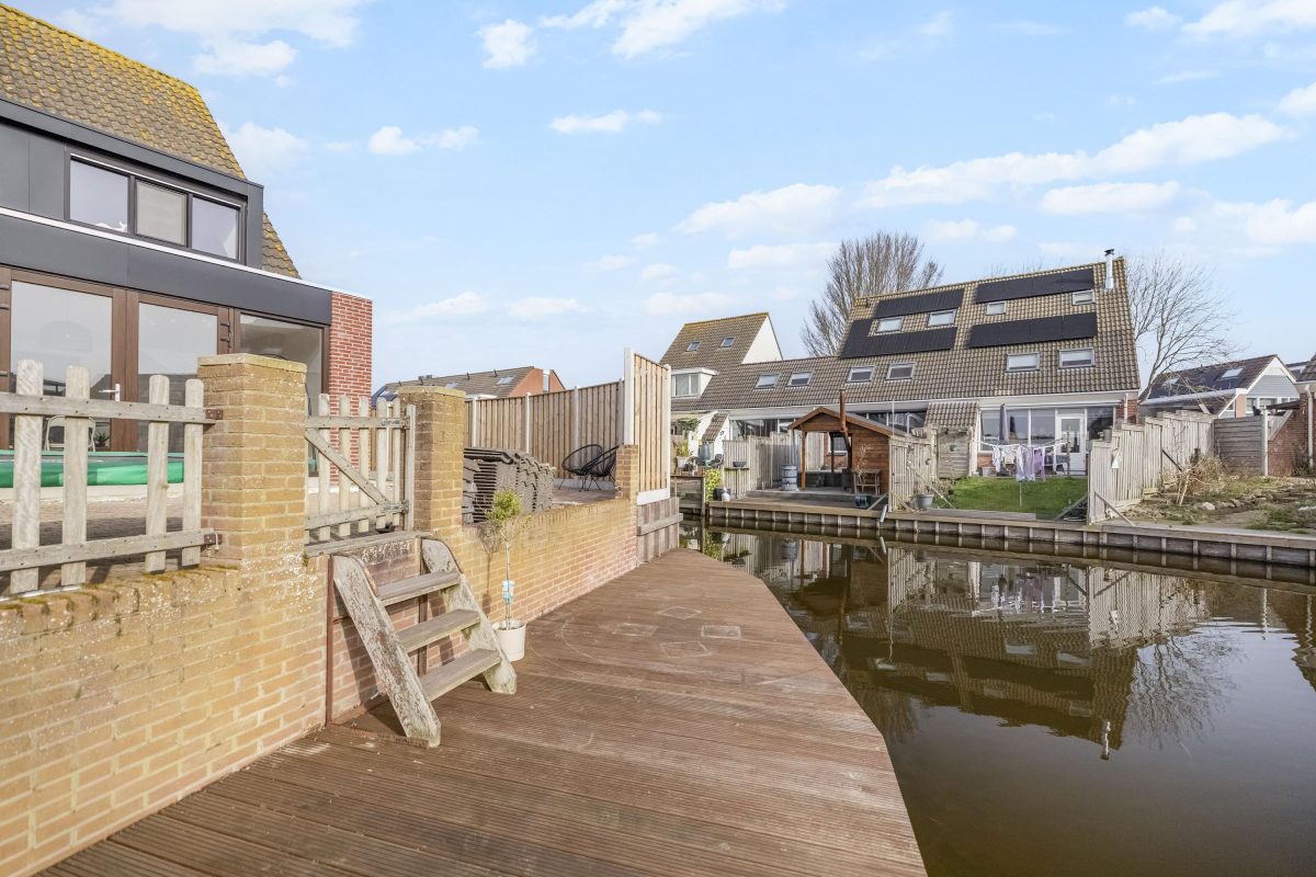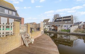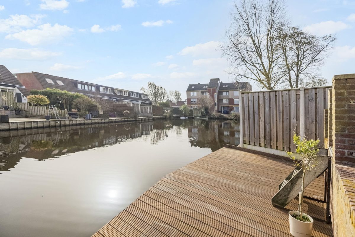 De achter- en zijtuin liggen direct aan het water en vormen één van de grootste pluspunten van deze woning.